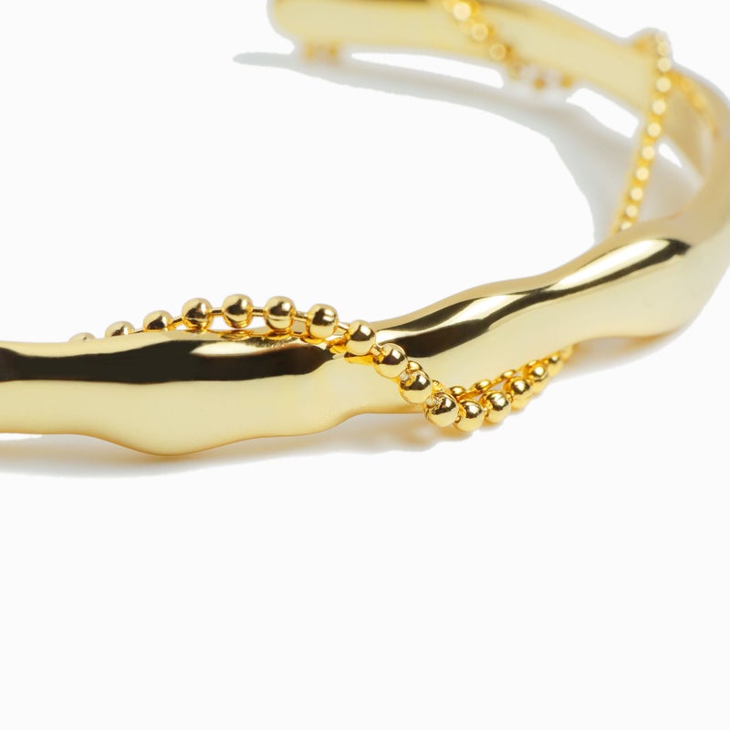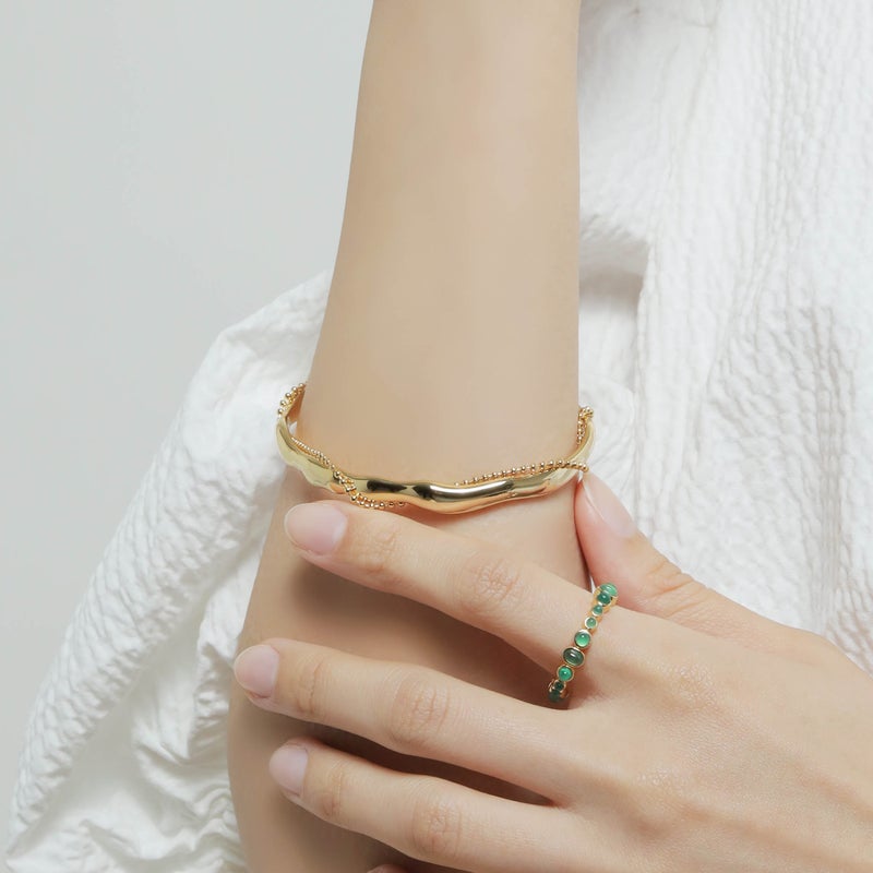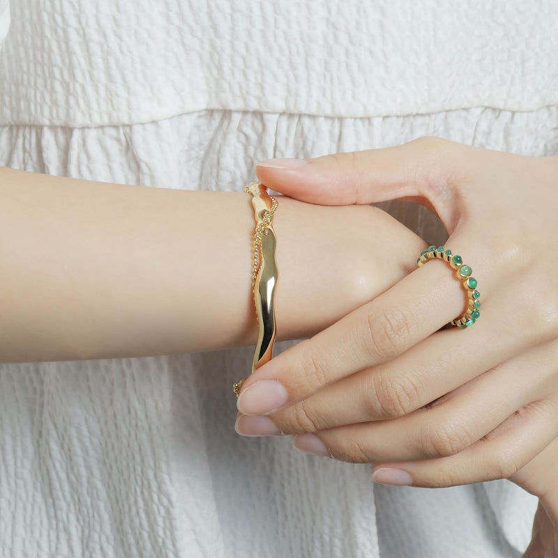 ゴールド/シルバーの2色展開で、抜け感のあるオープン仕様で着脱しやすく、デイリーにもドレスアップにも活躍します。